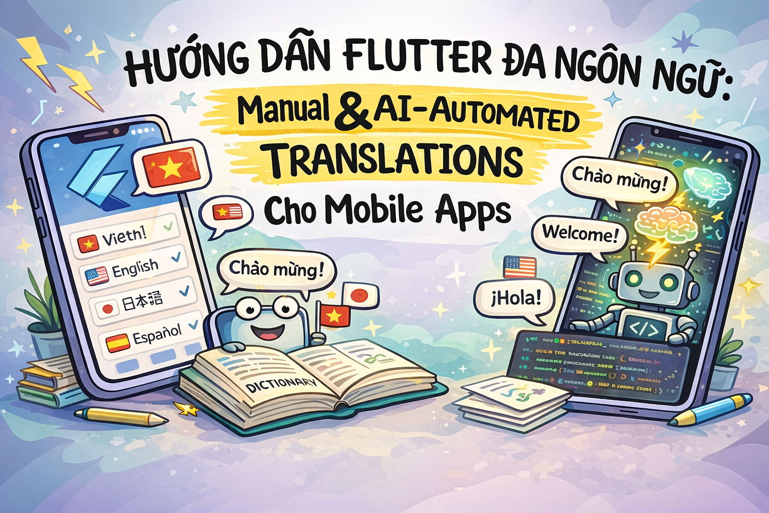 Bài viết này sẽ hướng dẫn bạn xây dựng một production-grade localization system cho Flutter app, hỗ trợ tiếng Anh, tiếng Pháp, và tiếng Tây Ban Nha, kết hợp auto-detection với manual switching, và tận dụng AI để tự động hóa translations.